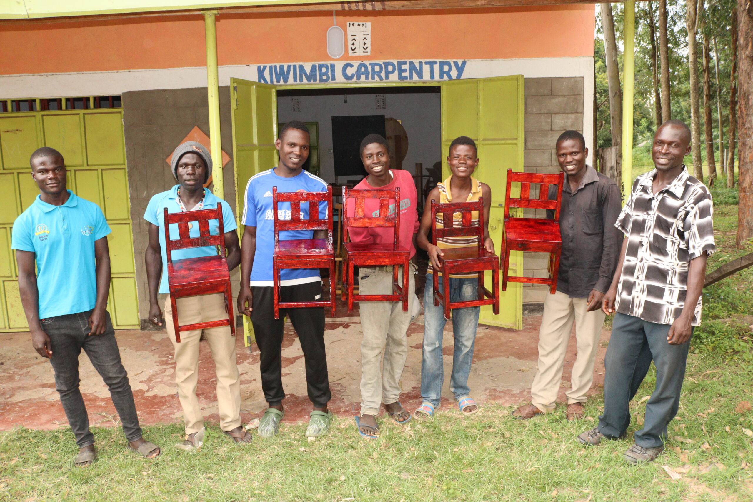 The carpentry program teaches important skills necessary to build a quality product including accurate measurement, joining techniques and fine finishing. While learning and strengthening these skills, the students create items that are useful at Kiwimbi and in our wider community. Their projects include making and improving upon the design of sturdy wooden chairs for the Library, building display cabinets for the tailoring department and recently repairing doors and desks at a local school. The carpentry students are able to use their skills to earn a living completing paid projects for individuals while at the same time continuing to refine their skills in our training program.